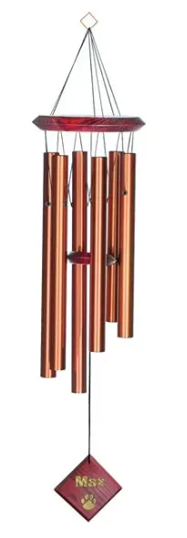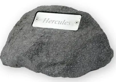 Faithful Companions helps you pay tribute to this bond with a full series of quality outdoor memorial products. This package includes your choice of the Garden Rock Urn or Paw Print Rock Urn plus the peaceful sounding engraved Deluxe Wind Chimes.